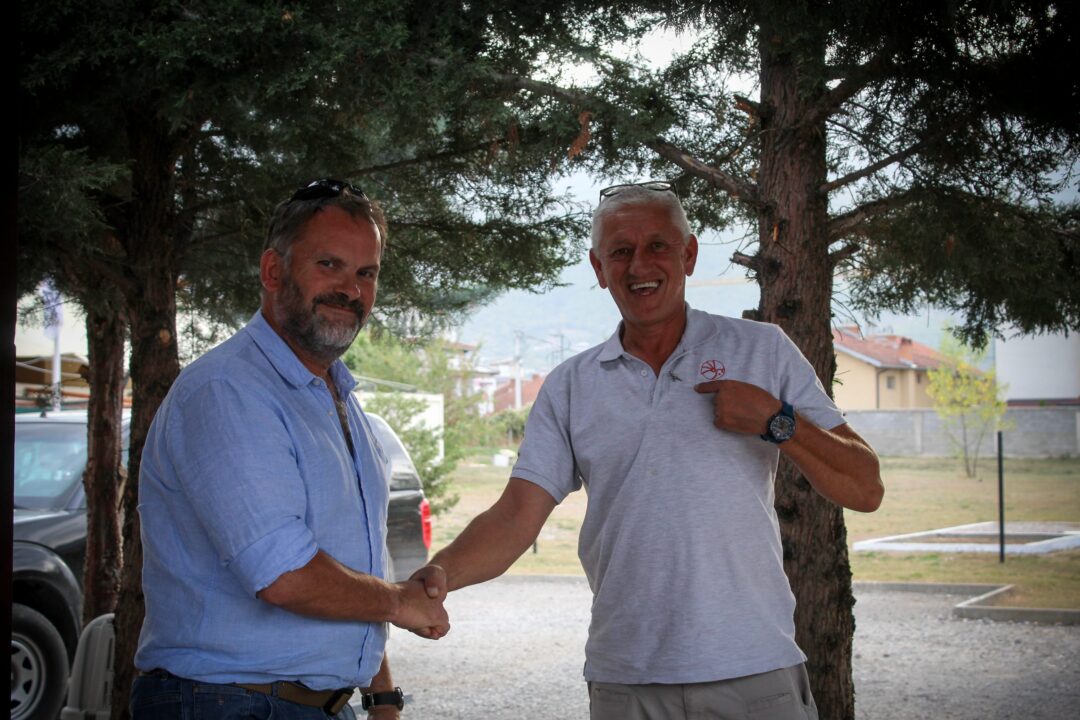 Ben Remfrey, PCM and MAT Kosovo’s Managing Director giving the Dinosaur emblem to Hidaverdi (Gerba) Topalli.