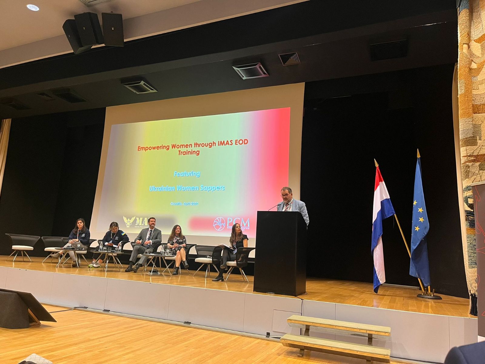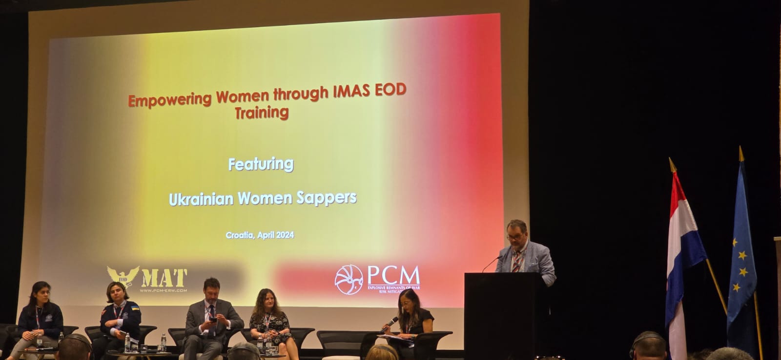 PCM and MAT Kosovo’s Managing Director, Ben Remfrey, delivering a presentation today at the 20th International Symposium on Mine Action 2024 in Dubrovnik, Croatia